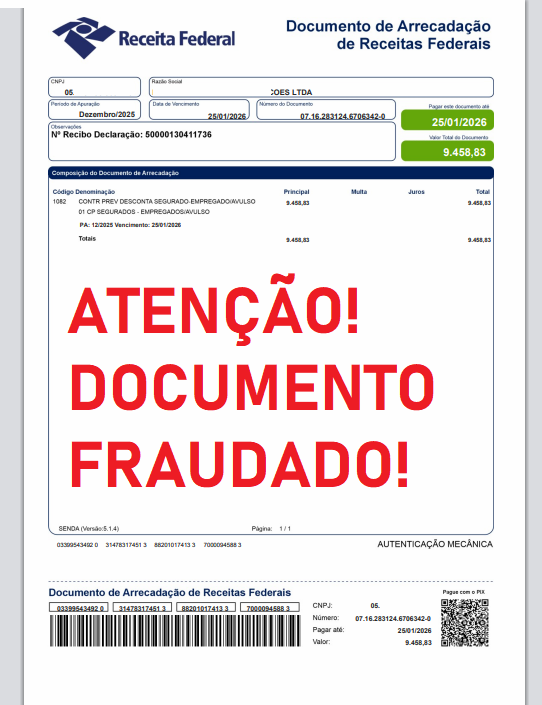 Conforme solicitado, segue o DARF-DAS