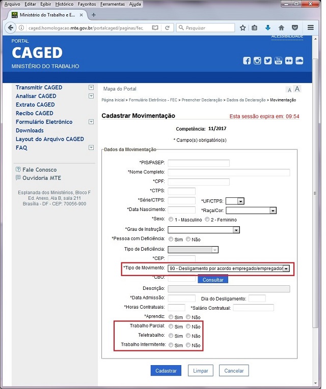 nova legislação trabalhista indicamos que o preenchimento dos novos campos é