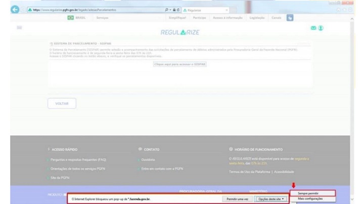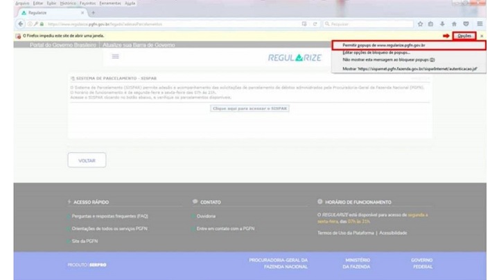 pop-ups de www.regularize.pgfn.gov.br", como na imagem abaixo: