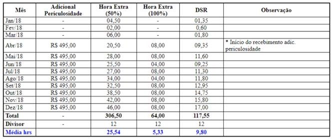 de adicional de periculosidade e horas extras: