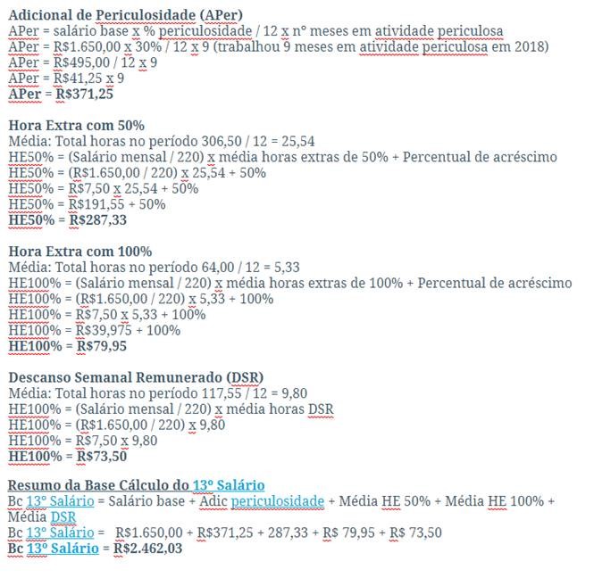 dos dados apresentados acima, o cálculo do adicional de periculosidade para
