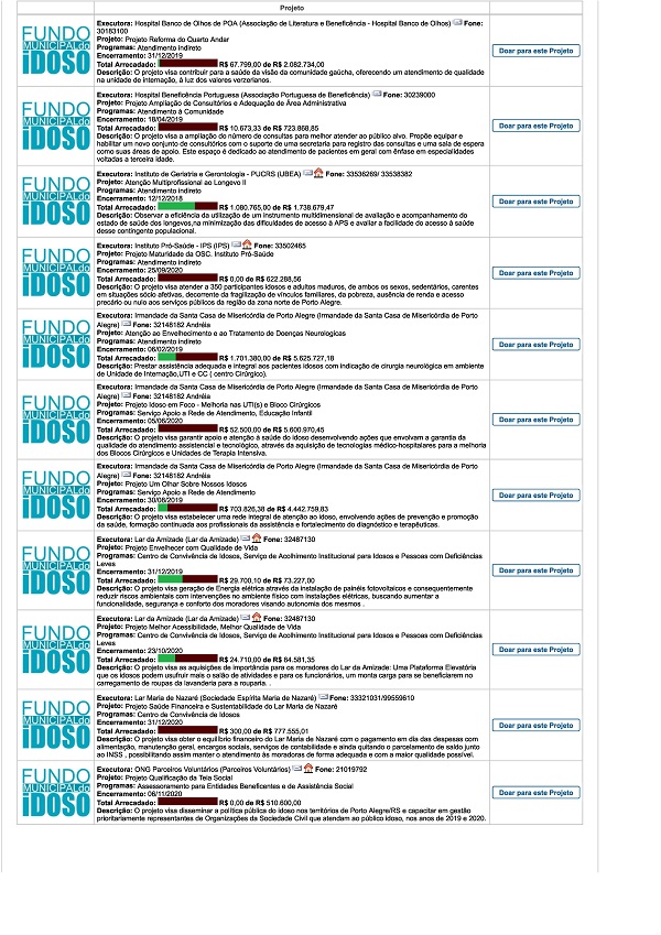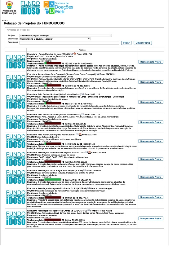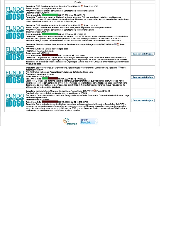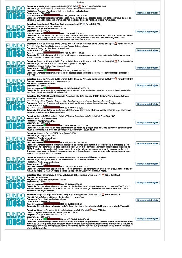 Relação de Projetos para o Fundo Idoso de Porto Alegre