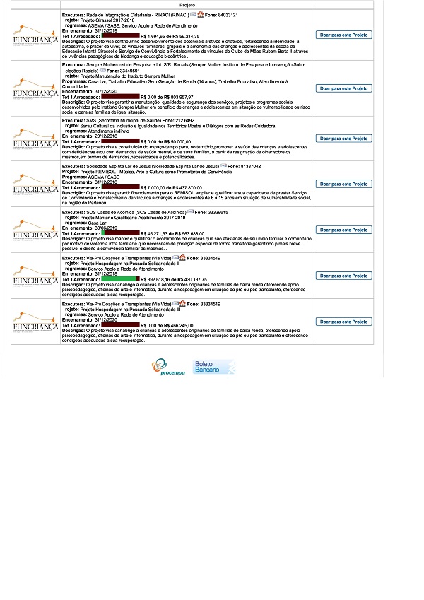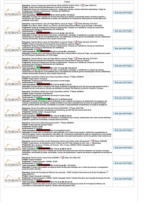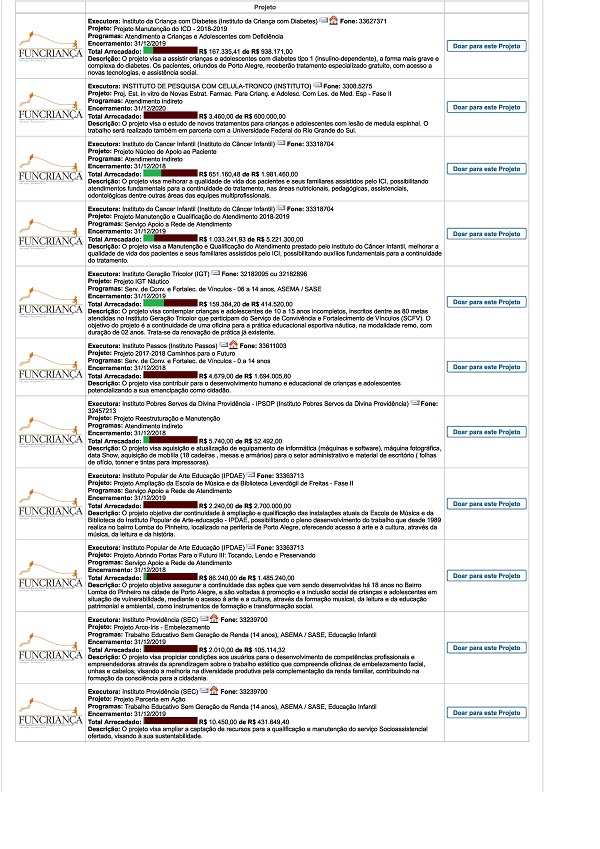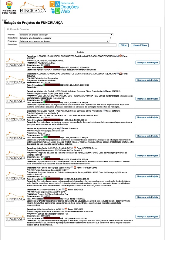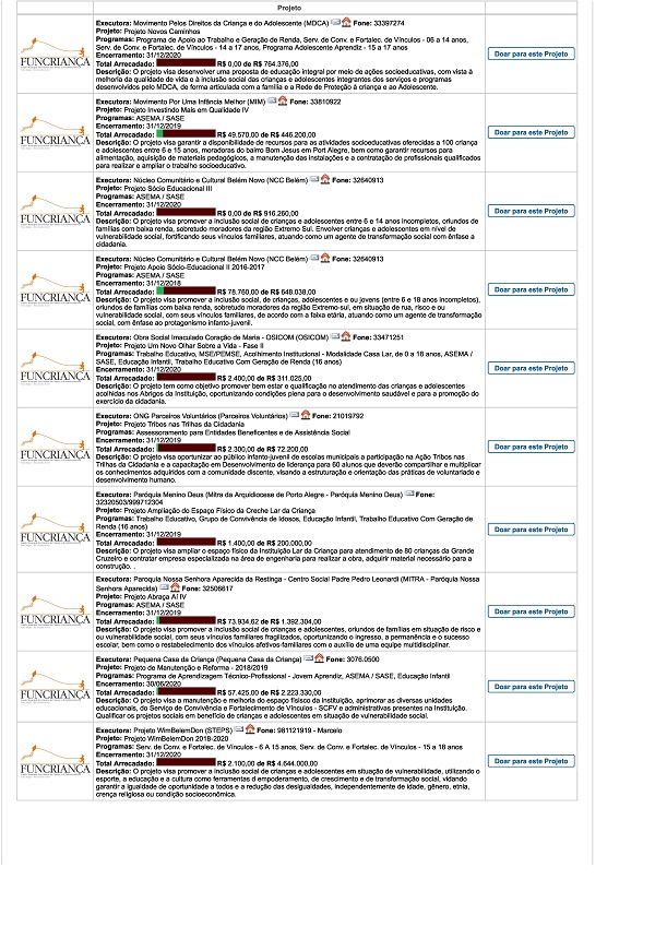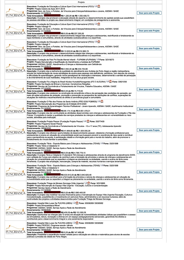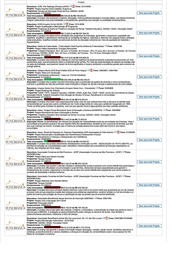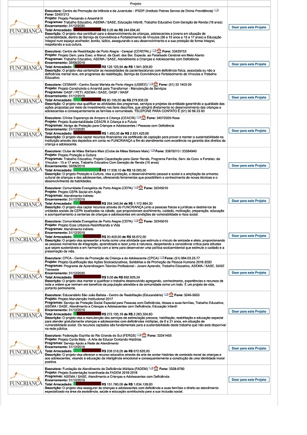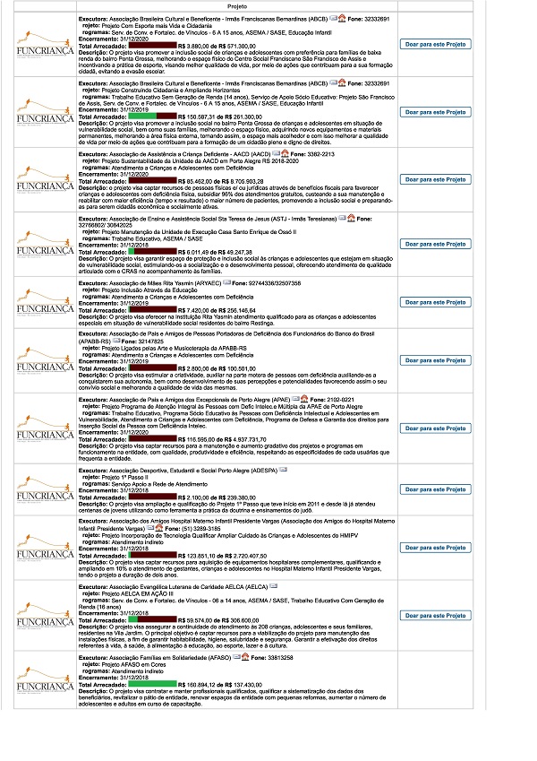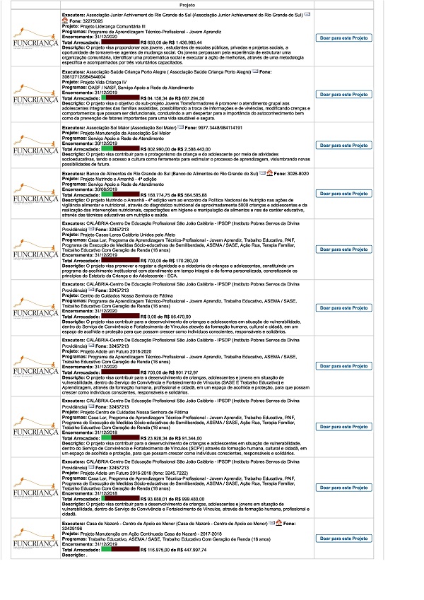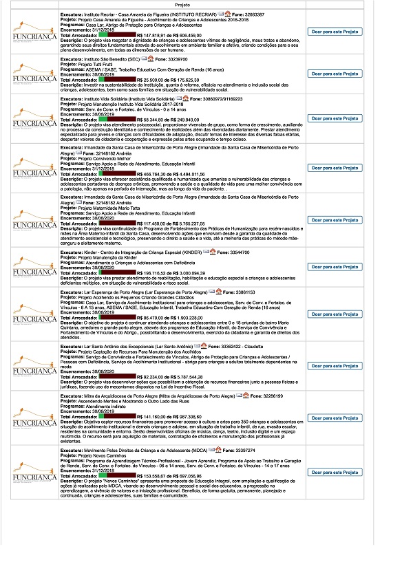 Relação de Projetos para Crianças e Adolescentes de Porto Alegre