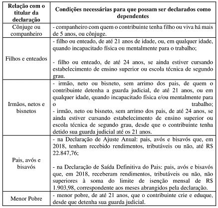 consideradas dependentes as pessoas que, de acordo com a tabela acima,