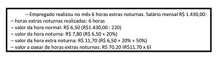 prestação de horas extras no horário noturno, o empregado fará jus aos