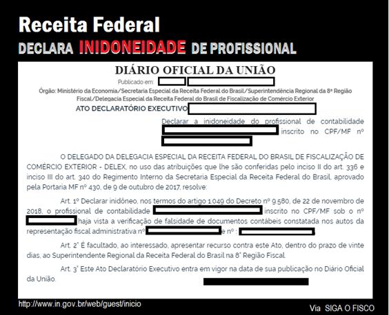 Receita Federal, a inidoneidade do profissional contábil foi declarada como
