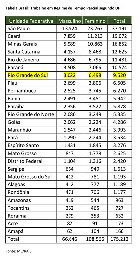 de SP é o que mais contrata em Tempo Parcial, enquanto o RS ocupa a 7ª posição