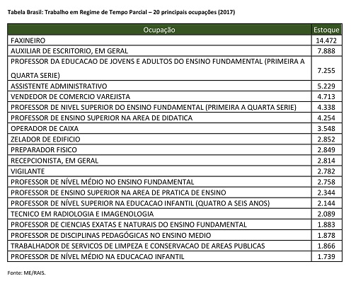 regime de tempo parcial foi a de Faxineiro (14,4 mil), seguida por Auxiliar de