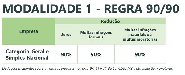 modalidade oferecida é a quitação total dos débitos, chamada de "Regra 90/90",