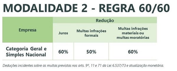 de 60% nos juros e nas multas. Os benefícios também são aplicados para os