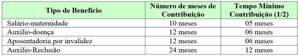 outros benefícios que exigem carência para a concessão como aposentadoria por invalidez, auxílio-doença, salário-maternidade e auxílio-reclusão, as