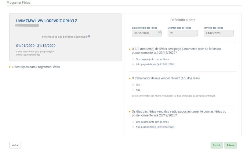 essa opção na própria ferramenta de férias, respondendo as perguntas sobre