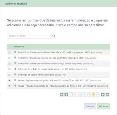 Adicionar Outros Vencimentos/Pagamentos. Selecionar as rubricas adequadas ao