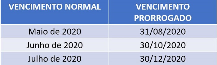 Os prazos de vencimento das parcelas mensais relativas aos parcelamentos administrados pela Receita e Procuradoria ficam prorrogados da seguinte forma: