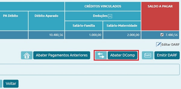 no PERDCOMP Web, dispensando a digitação na DCTFWeb. São elas: "Abater Dcomp" e