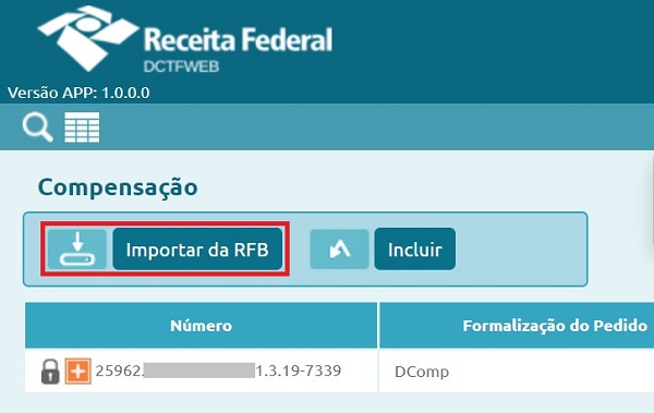 que permitem importar os dados da Declaração de Compensação (DComp) transmitida