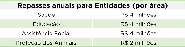 O restante do recurso, R$ 14 milhões, é destinado entre as entidades escolhidas