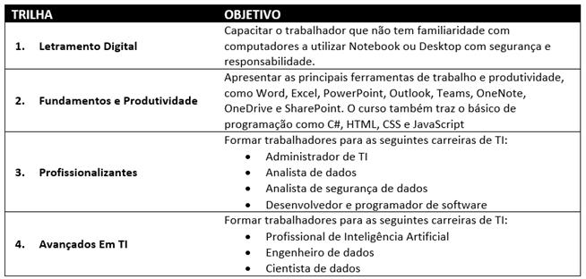 a alfabetização digital até módulos mais avançados de computação em nuvem,