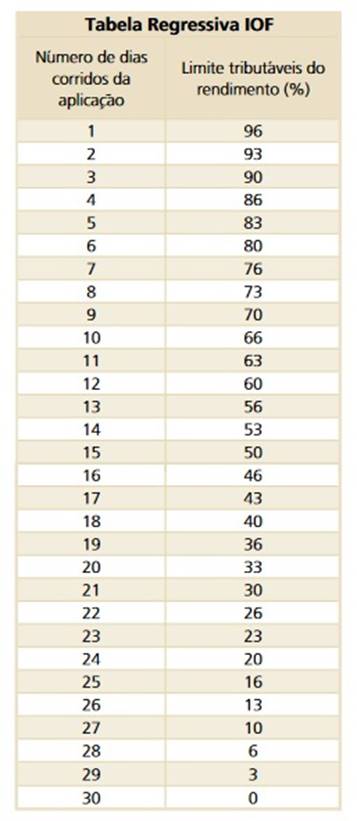"despenque". Confira adiante a tabela do IOF sobre as aplicações: