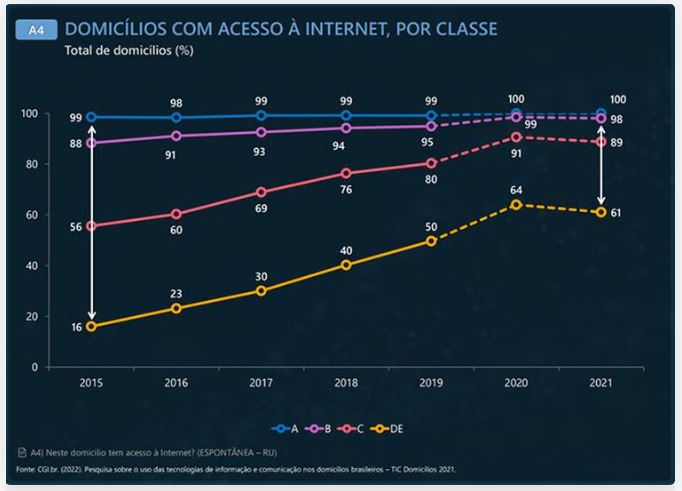possuem acesso à internet, apenas 61% dos das classes D/E dispõem do serviço. A