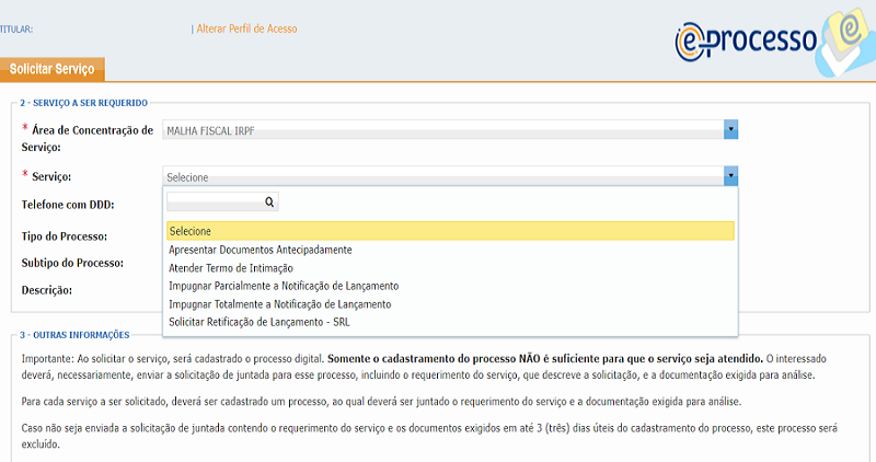ao órgão. Acesse o menu E-Processo (no sistema e-cac). Vá