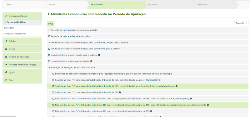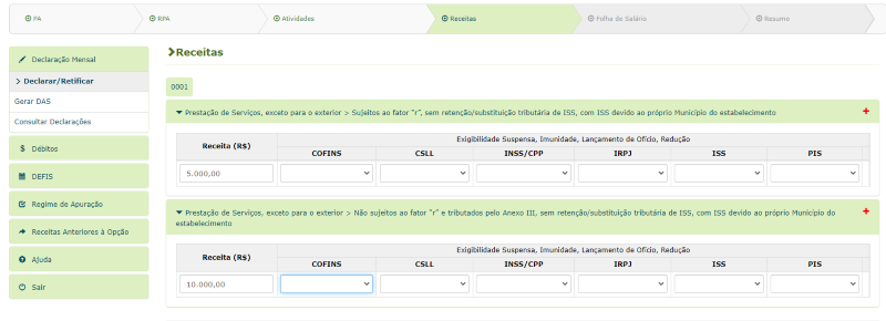 Nacional é não segregar (separar) no Programa Gerador (PGDAS) as receitas