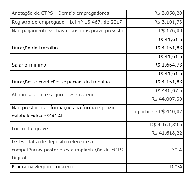 multa mínima é no valor de R$ 440,07 por trabalhador prejudicado.