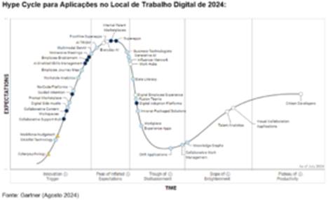 Digital dos Colaboradores está no Vale da Desilusão no Hype Cycle do Gartner, o