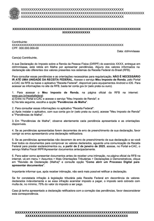 cartas a contribuintes pessoas físicas de todo o país que estão com a