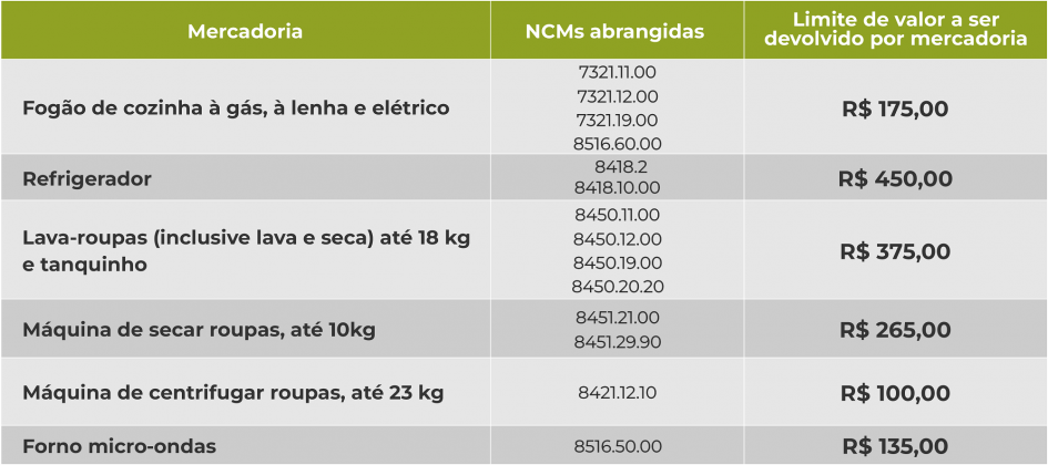 no programa Devolve ICMS Linha Branca e limites de devolução