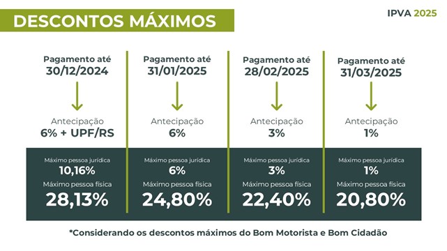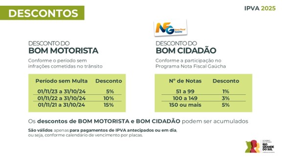 Fazenda do RS anunciou o calendário e os descontos do IPVA 2025. O pagamento do