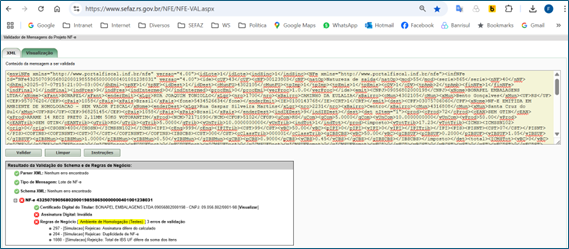 disponível também a possibilidade de utilização do "Validador de Mensagem do