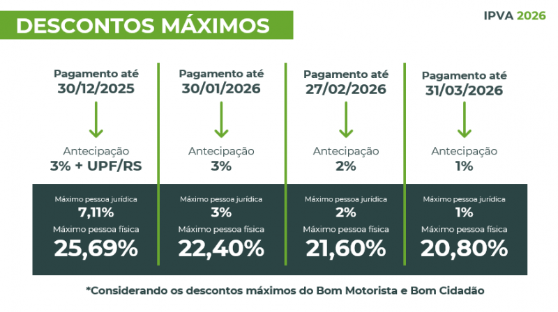 contribuintes acumularão descontos máximos de 22,40% (janeiro/2026), 21,60%