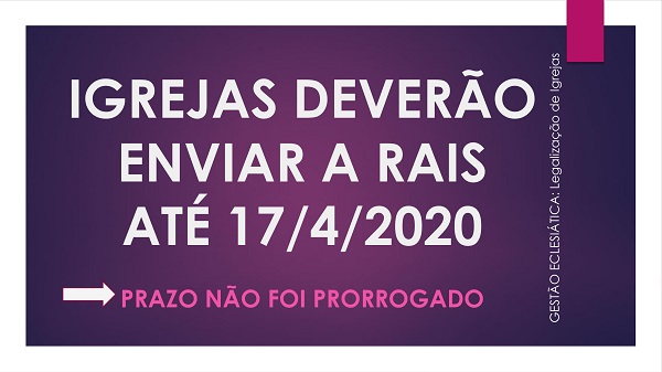 IGREJAS DEVERÃO ENTREGAR A RAIS ATÉ 17/04/2020 |