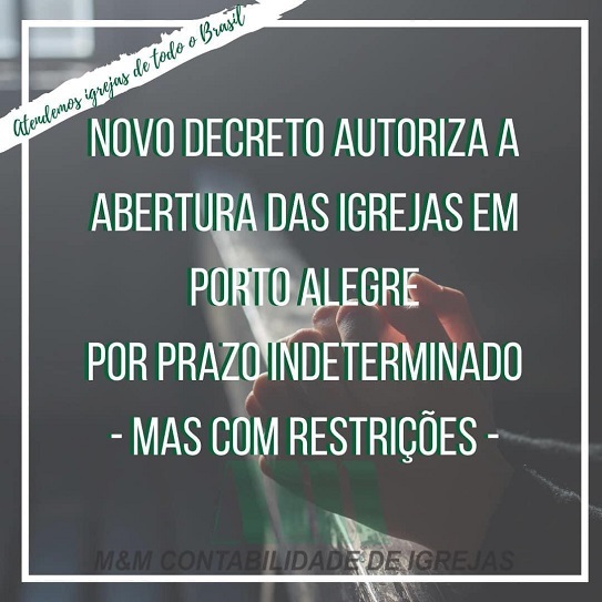 NOVO DECRETO AUTORIZA A ABERTURA DAS IGREJAS EM PORTO ALEGRE,