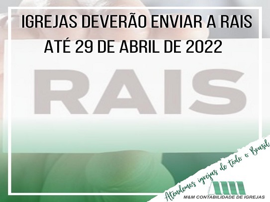 Igrejas deverão enviar a RAIS até 29 de abril de 2022 |