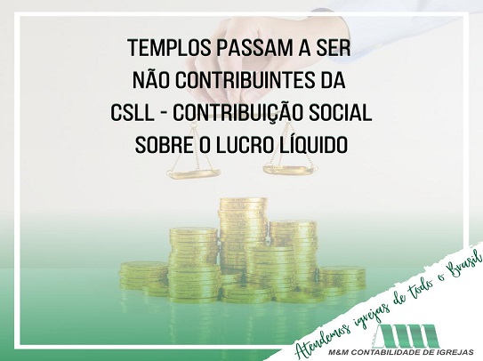 Porém, com a publicação dos vetos da Lei 14.057/2020, ficou estabelecido que aos templos passam a não ser contribuintes (não pagar) a CSLL - Contribuição Social sobre o Lucro Líquido. (A CSLL é uma contribuição que tem a base e forma de cálculos muito similares as do Imposto de Renda Pessoa Jurídica – IRPJ. As Igrejas já eram imunes ao IRPJ).