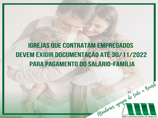 As Igrejas que contratam empregados, com registro em Carteira de Trabalho (CTPS) e que estes tem direito ao recebimento do benefício do Salário-Família, devem ficar atentas que a continuidade do recebimento, por parte do empregado, do benefício do Salário-Família está condicionada à apresentação de: a) comprovação de vacinação dos filhos e equiparados até os 6 anos de idade. Quanto a comprovação de vacinação, esta é anual, devendo ocorrer no mês de novembro; b) comprovação de frequência escolar dos filhos e equiparados a partir dos 4 anos de idade. Quanto a comprovação de frequência escolar, ela é duas vezes por ano, nos meses de maio e novembro. É de responsabilidade do empregado com CTPS registrada (auxiliar de escritório, limpeza, segurança, etc.) a obrigação de fornecer a documentação acima, e com isso preencher os requisitos para percepção e manutenção do salário-família. Porém, embora não havendo previsão legal que obrigue a Igreja de avisar, é importante que a Instituição comunique tais regras aos seus empregados com antecedência, para agilizar o processo de documentação. A referida comunicação pode ser feita através do quadro de avisos, circulares ou até mesmo uma mensagem no contracheque do empregado, por exemplo. Portanto, a Igreja ou Instituição deverá suspender, até a entrega da documentação, o pagamento do salário-família nos casos em que o empregado não apresente a tempo as comprovações acima, nas datas regulamentadas. Logo, tal pagamento e sua manutenção fica, condicionado à apresentação de tais documentos. O QUE É SALÁRIO-FAMÍLIA? Salário-Família é o benefício pago aos trabalhadores com remuneração mensal de até R$ 1.655,98 (valor relativo ao ano de 2022), para auxiliar no sustento dos filhos de até 14 anos incompletos ou inválidos. Neste ano de 2022, o valor mensal do Salário-Família, por filho de até 14 anos incompletos ou inválidos, é de R$ 56,47. O benefício é pago mensalmente ao empregado, pela Igreja à qual está vinculado, e a Igreja deduz do recolhimento das contribuições previdenciárias sobre a folha salarial. Ou seja, o pagamento do Salário-Família não gera custos para a Igreja. Outros detalhes: a)São equiparados aos filhos, os enteados e os tutelados que não possuem bens suficientes para o próprio sustento; b)Compreende a remuneração, para fins do limite mensal de R$ 1.655,98, além do salário, os adicionais como horas extras, comissões, adicional noturno, etc.; c)Quem tem remuneração acima de R$ 1.655,98 mensal não tem direito ao recebimento do salário-família. Base Legal: § 2° do artigo 361 da IN INSS/PRES n° 077/2015 e art. 81 a 92 do Decreto 3.048/1999, elaborado pela M&M Assessoria Contábil. Diretor da M&M autografará publicaçãona Feira do Livro de Porto Alegre