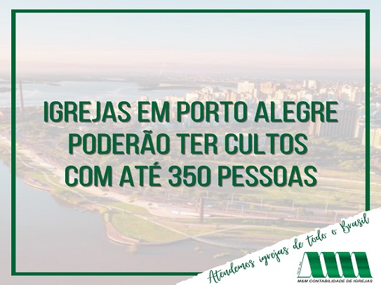 Com a publicação de um novo Decreto pela Prefeitura Municipal de Porto Alegre, as Igrejas localizadas na capital gaúcha, a partir de 19/10/2020, poderão ter cultos, missas e demais reuniões religiosas com até 350 pessoas simultâneas (antes, este limite era de 250 pessoas).