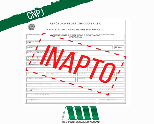 Nota M&M: A matéria acima foi adaptada a realidade das Igrejas pela M&M Contabilidade de Igrejas. Porém, a inaptidão do CNPJ por falta de declarações não está sendo objeto de ação somente para as Igrejas. A atuação da Receita Federal está abrangendo todas as pessoas jurídicas que mantém CNPJ, como: Igrejas, Cooperativas, Instituições Sem Fins Lucrativos, Empresas, etc. Ou seja, nós da M&M Contabilidade de Igrejas entendemos que esse contexto não possa ser considerado como perseguição religiosa ou qualquer outras forma de represaria as Igrejas.