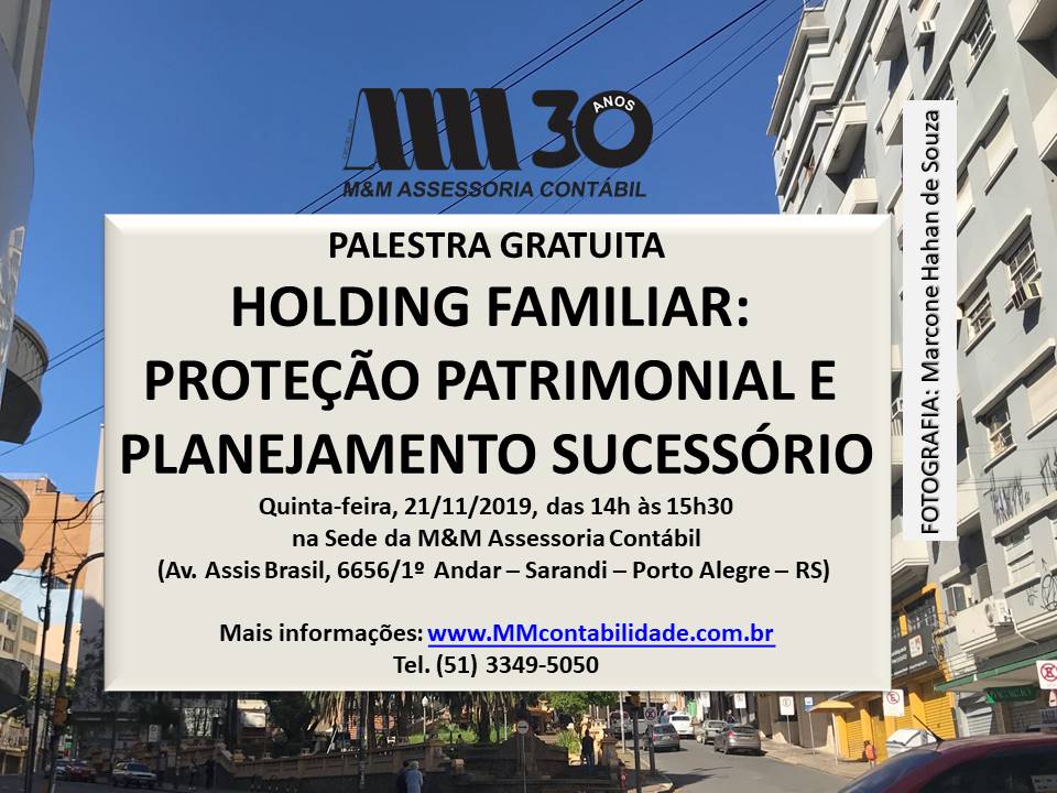 a) 21/11/2019, a palestra sobre Holding Familiar proteção